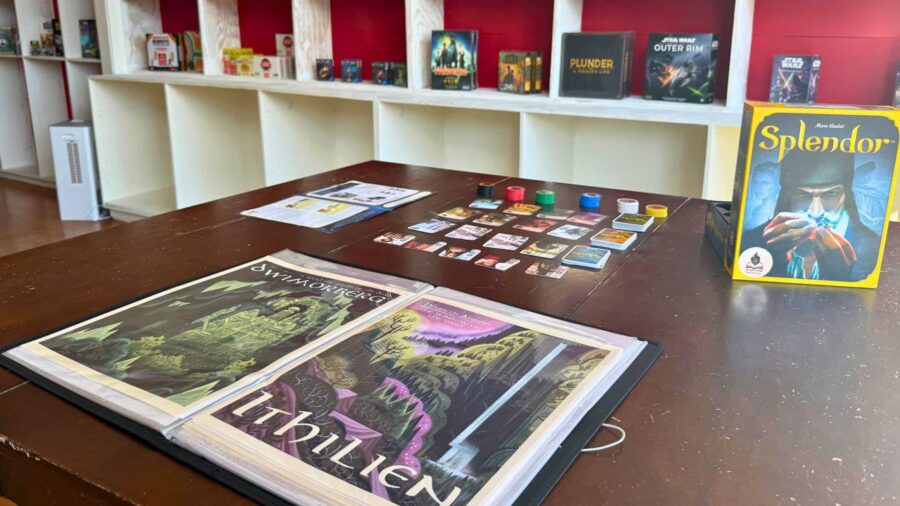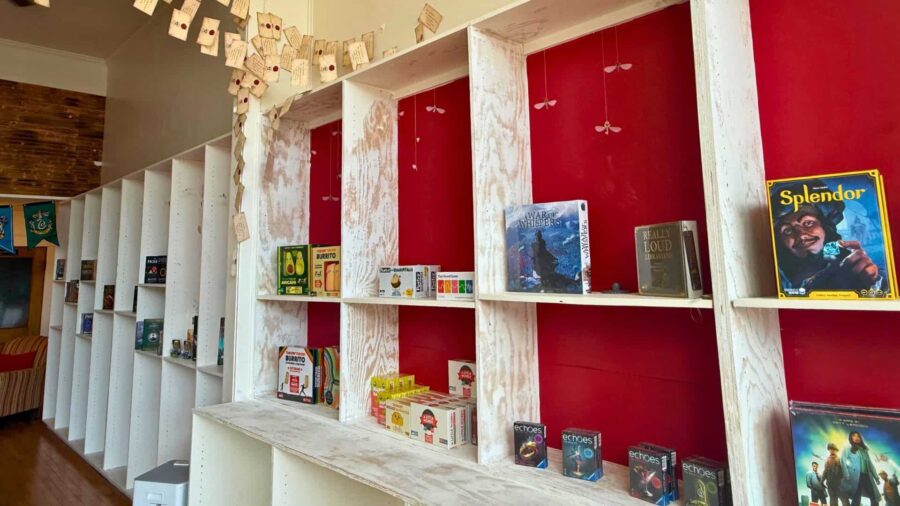 The store’s book selection focuses mainly on fantasy, while the game side includes everything from quick party games to longer strategy and deck-building games. Austin said his goal is to provide a little of everything, from casual titles to more complex gameplay. The Pettley’s shared that they are happy to assist with recommendations for those browsing their book and game selection.