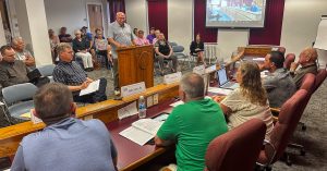 Keith Roos speaks out against the allowance of short-term VRBO rentals in the Stone Crossing neighborhood (photo S Jason Cole) In a remarkable display of community engagement, residents of the Stone Crossing neighborhood came together at a Planning and Zoning Commission meeting on Tuesday evening to voice their concerns and successfully block the approval of