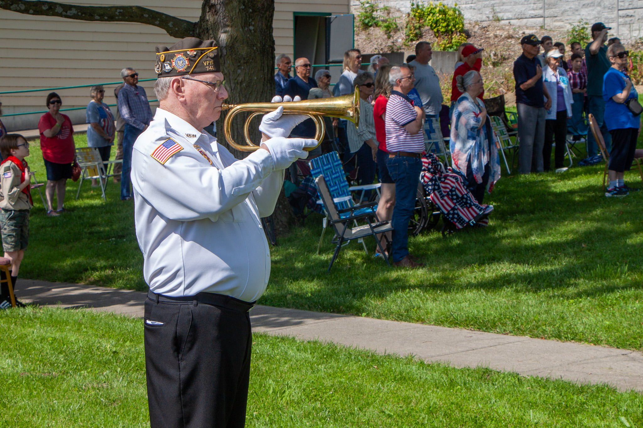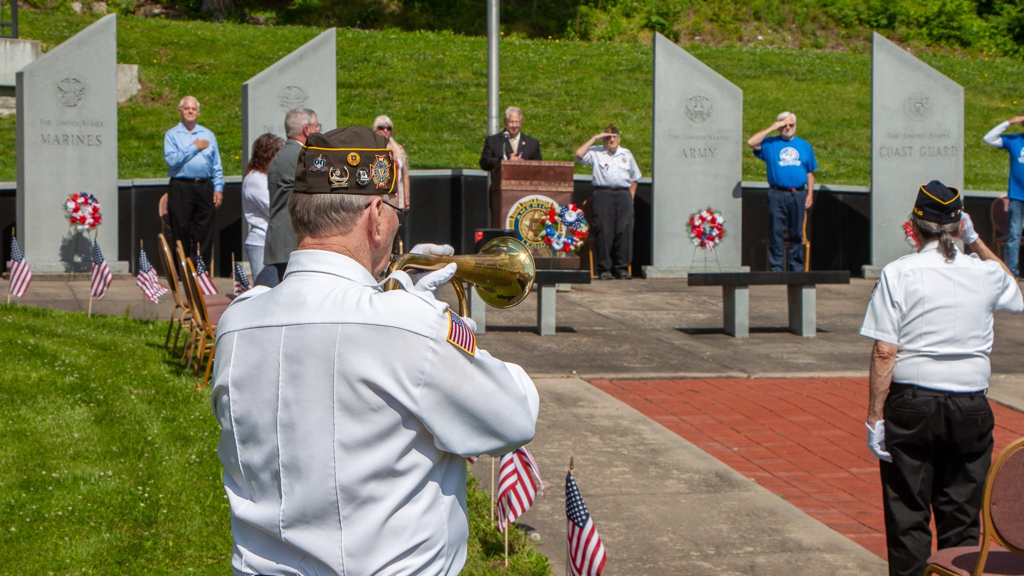 Kelly Wilkins captivated the audience with her rendition of the national anthem, which was followed by an opening prayer from Joseph Ruckman. The crowd stood in silence as the Ruckman’s words echoed across the lawn, providing a solemn reminder of the sacrifices made by military personnel.