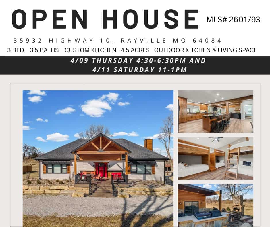 There will be an Open House at 35932 Highway 10, Rayville, MO 64084