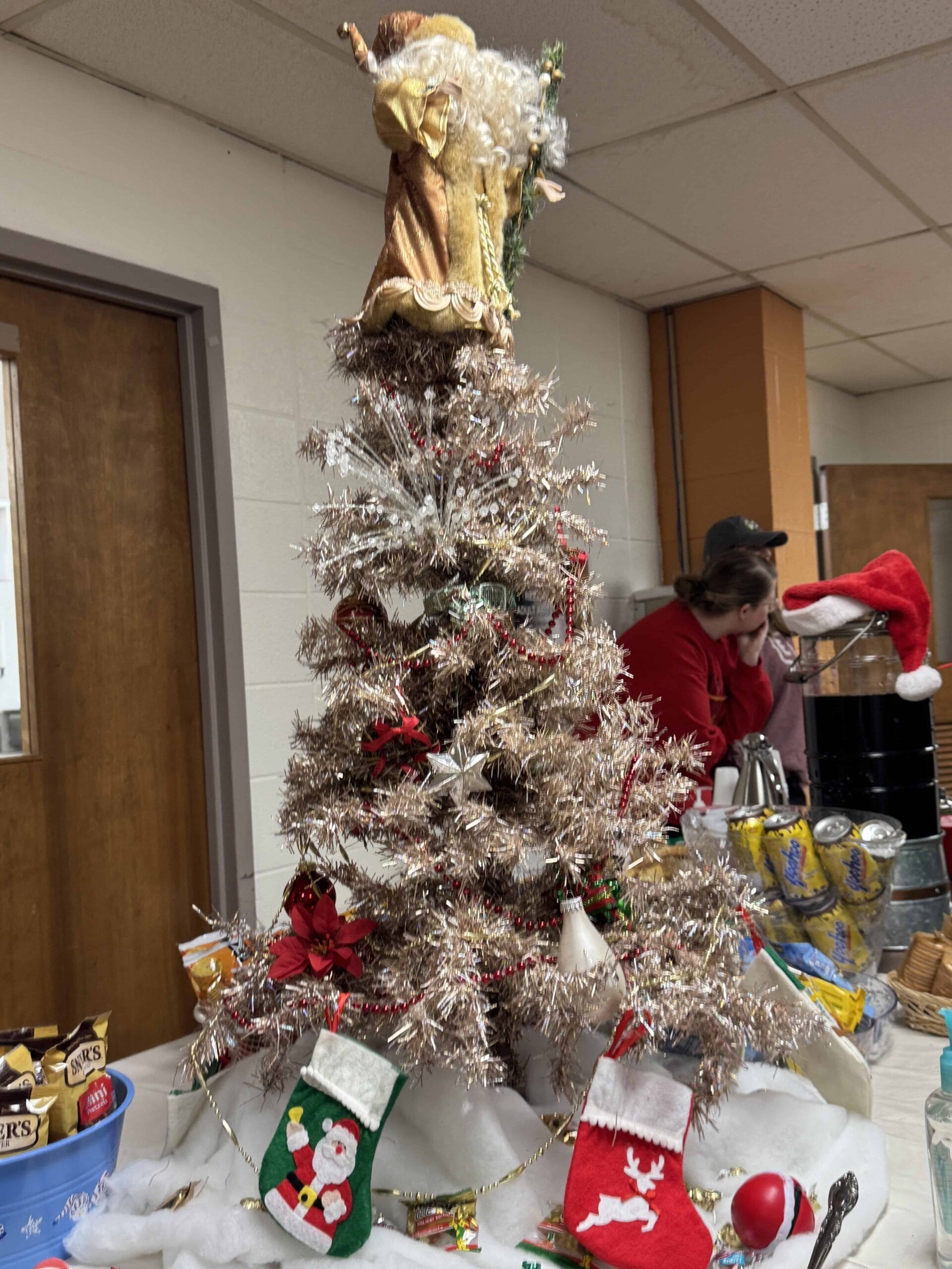 The Center transformed its basement into a festive wonderland, complete with multiple stations for families to explore. At one station, parents could select gift bags and inspect their contents, while a gift-wrapping station offered paper, bows, tape, and bags for wrapping presents on-site. Another station provided stockings and fun items for stuffing.