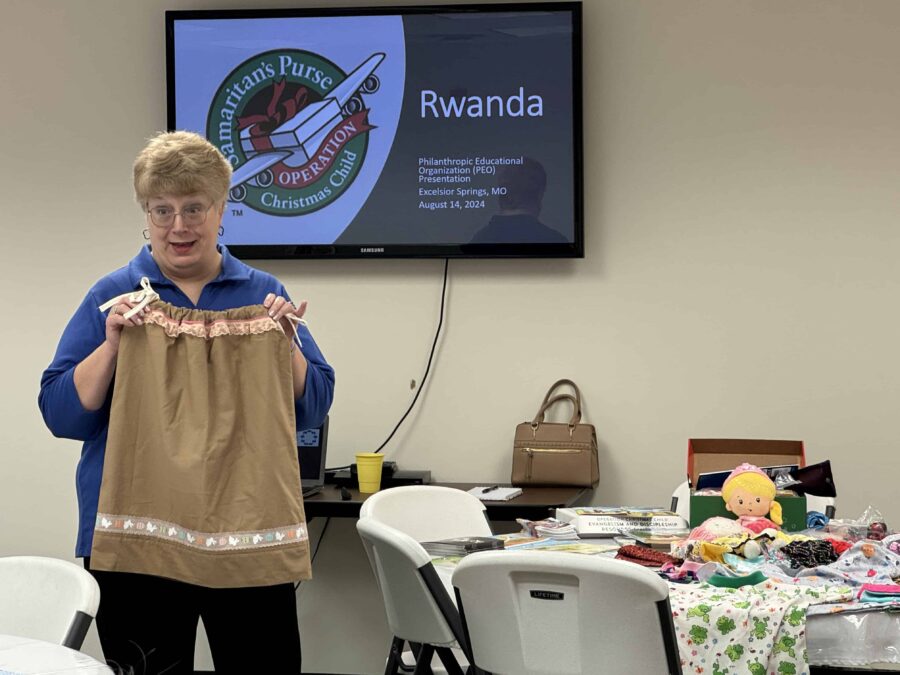 On Wednesday, August 14th, the Excelsior Springs Chapter of PEO met at the First United Methodist Church for a special presentation on the Samaritan’s Purse International Relief program, specifically focusing on Operation Christmas Child. Guest speaker Cheryl Melvin shared the incredible work this global initiative does in anticipation of their National Collection Week, scheduled for November 18th-25th.