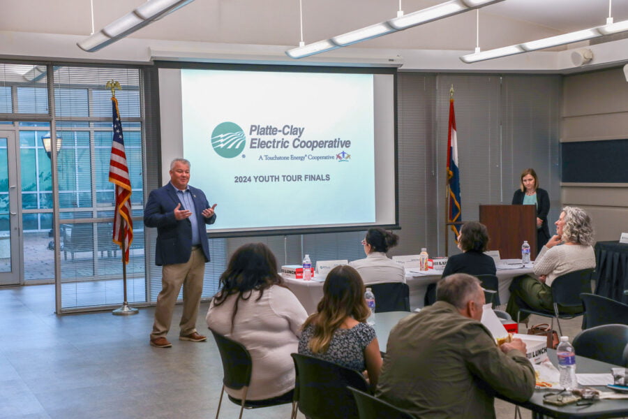 Kearney, MO–Platte-Clay Electric Cooperative (PCEC) hosted the 2024 Rural Electric Youth Tour regional finals at their headquarters in Kearney on Wednesday. Six exceptional students showcased their understanding of the seven cooperative principles to a panel of three community judges. Out of this pool of extraordinary talent, Isabella Monachello from Smithville High School and Muhammad Ali Alrubaye from Liberty North High School emerged as the chosen ambassadors. Their remarkable achievements have earned them the opportunity to represent PCEC at the prestigious NRECA Youth Tour leadership development conference in Washington, D.C., this summer.
