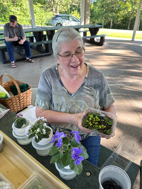 Guest speakers Jay “the Snail” Vantuyl from Pleasant Hill and Ardyth Stone from Kearney provided a crash course on African Violet care and propagation.