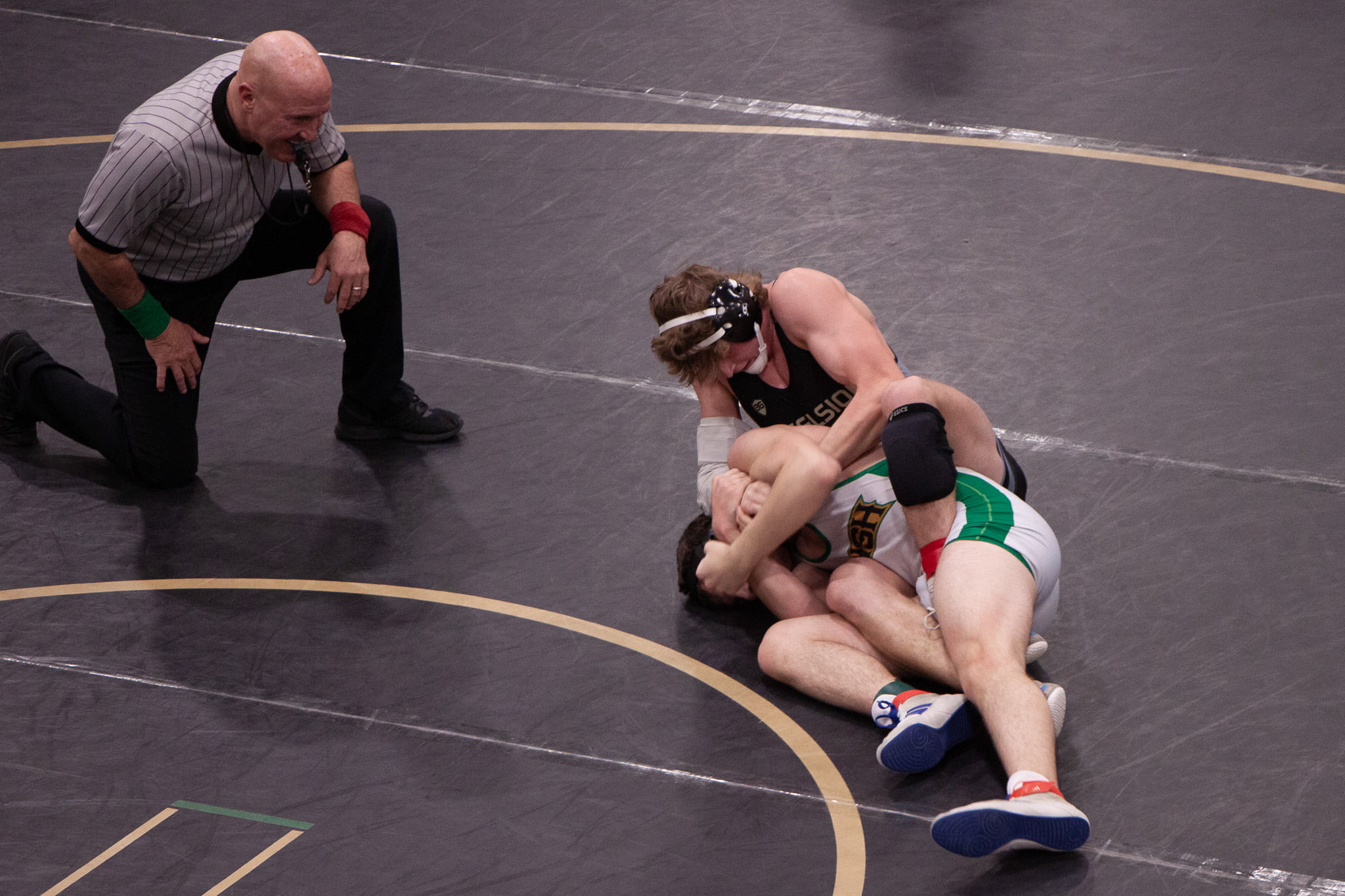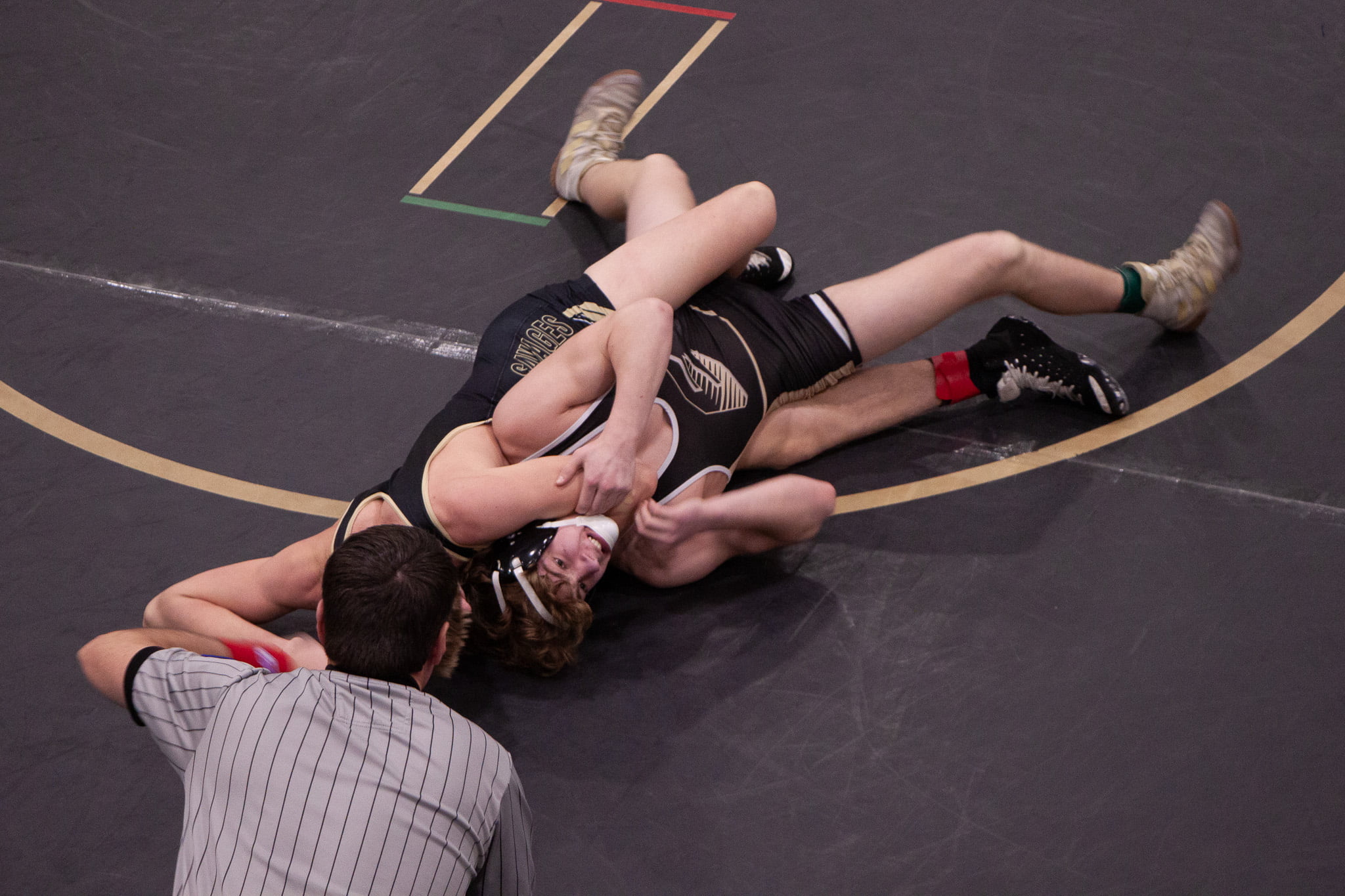 The boys’ tournament featured intense matches across various weight classes.